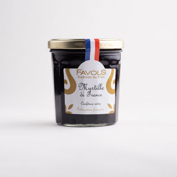Blåbärsmarmelad av högsta kvalitet från Favols, Frankrike. Tillverkad av naturliga ingredienser med högt (55%) fruktinnehåll, utan konserveringsmedel.