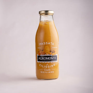 Sås gjord på gula, solmogna ciliegino-tomater från Sicilien – varsamt krossade och passerade för att bevara den naturliga sötman och fräschören. Perfekt som bas till både pizzan och pastasåsen.
